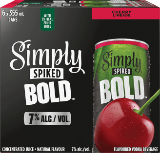 Introducing Simply Spiked BOLD Cherry Limeade, the spiked limeade flavour you know and love from the juice experts at Simply®. Now m ade bolder with juicier flavour & 7% ABV. Serving up refreshing taste with a smooth finish, available in a 6 pack of 355ml cans.